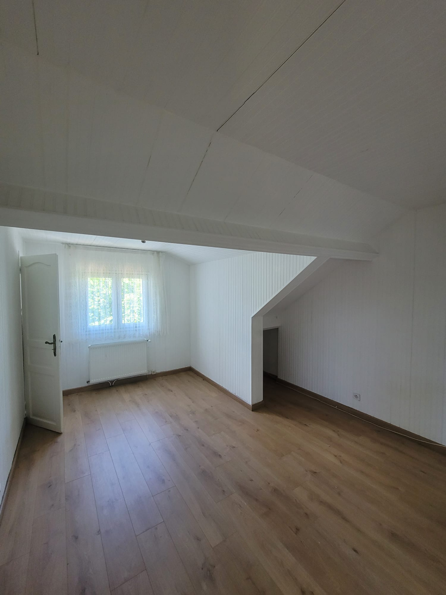 À l’étage, un palier dessert deux chambres supplémentaires et une salle d’eau avec WC.